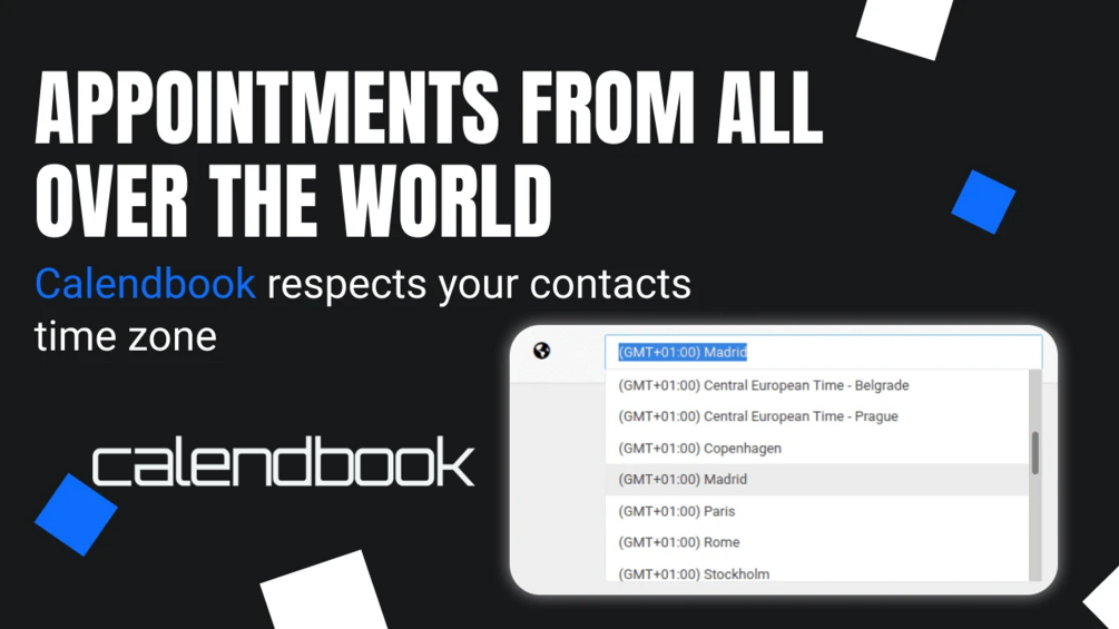 🌍 Appointments worldwide - Calendbook knows time zones and makes conversions