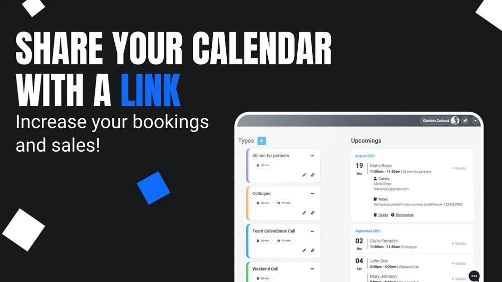 Let customers book appointments by sharing calendar free slots with links.
