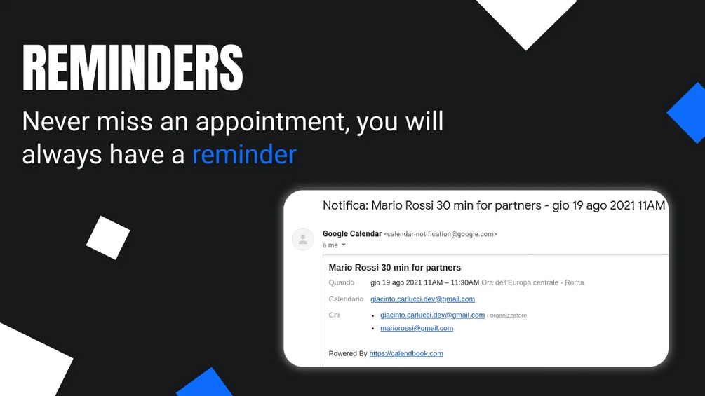 🔔 Reminders - Never miss an appointment, get email reminders and notifications