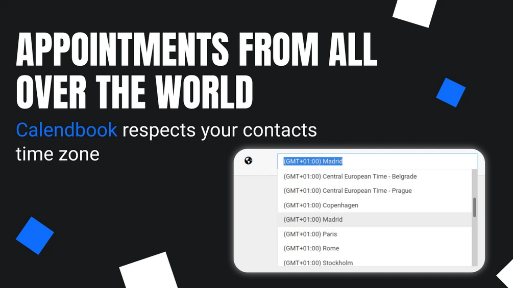 🌍 Appointments worldwide - Calendbook knows time zones and makes conversions
